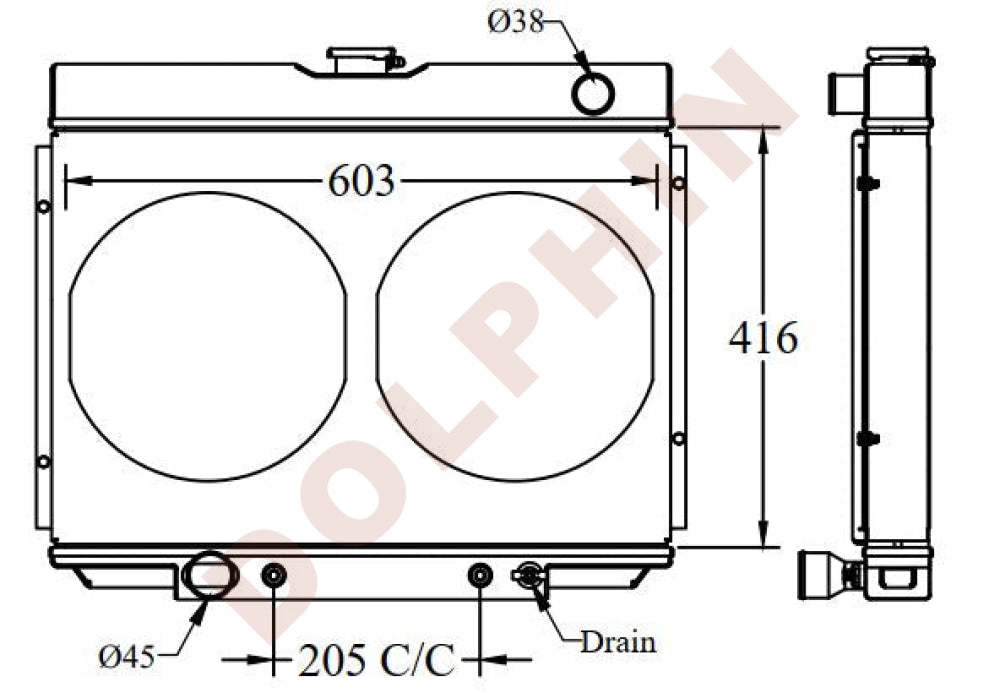FORD Radiator FAIRLANE - 416 x 603 x 56 mm